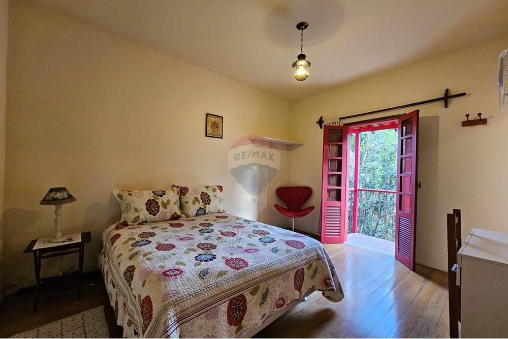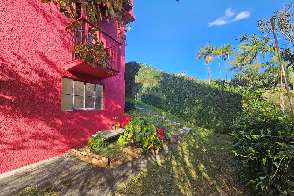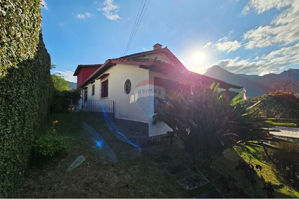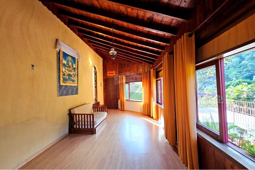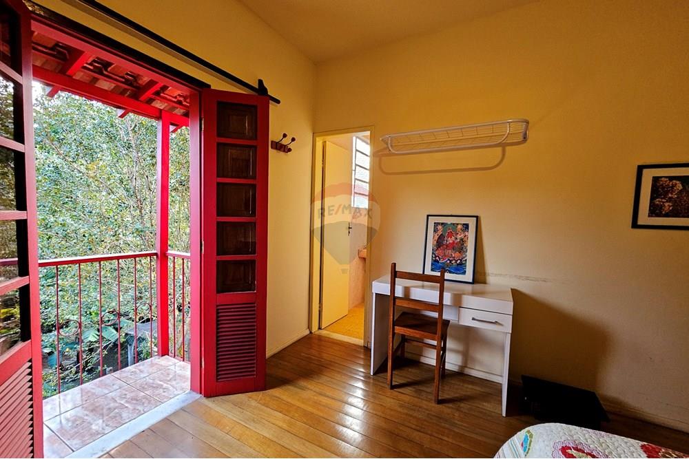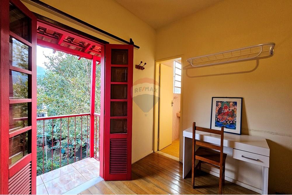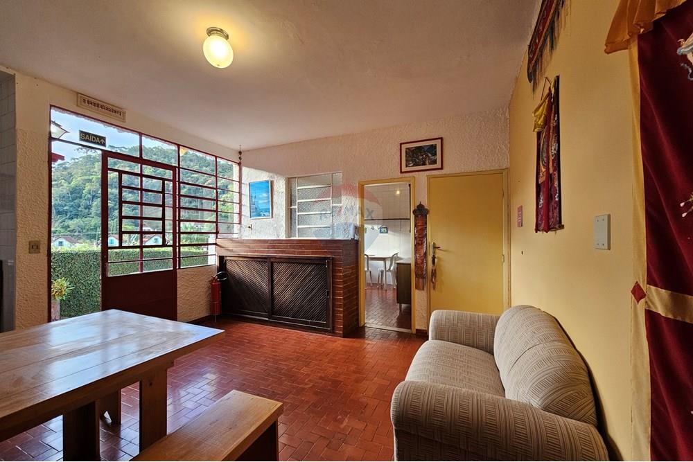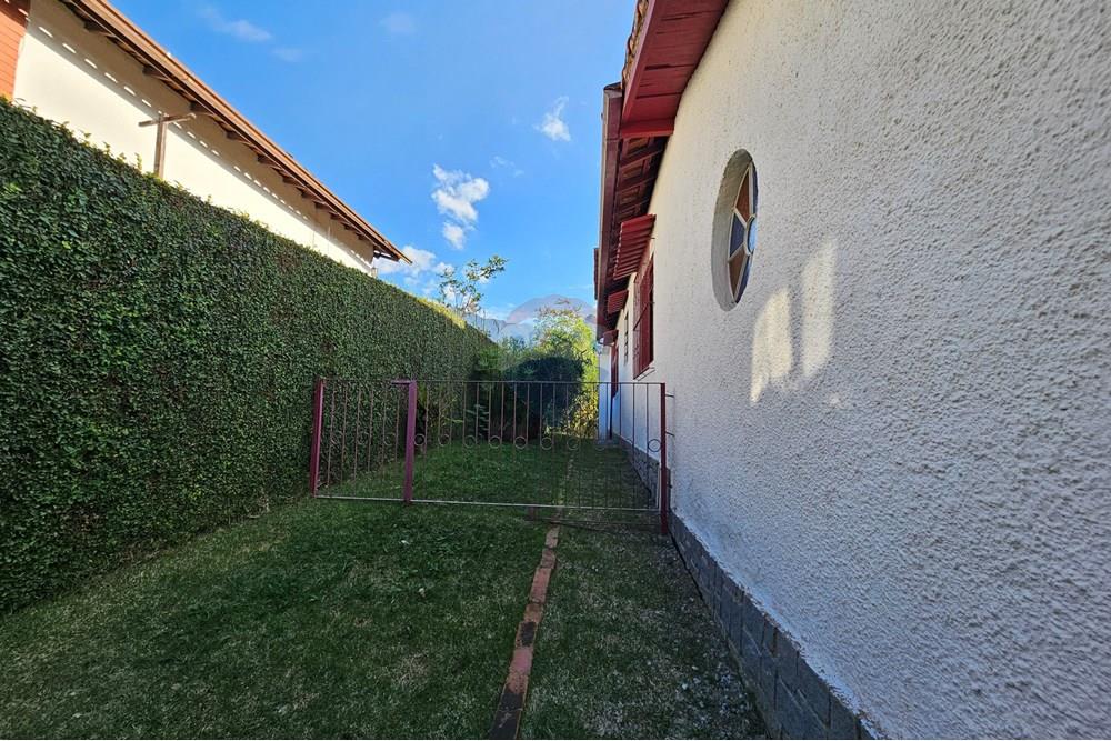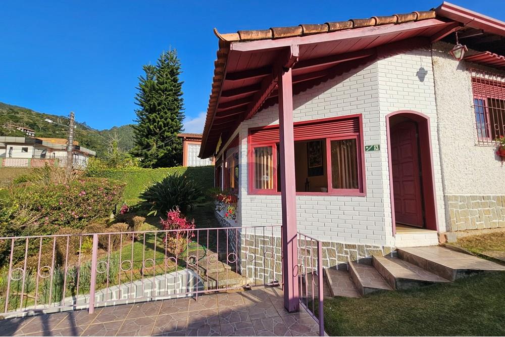 São 3 quartos, sendo 2 suítes e mais 1 quarto com funcionalidade de suíte canadense, em ligação com o banheiro social. Uma antessala ampla e com janelas que dão para a vista do jardim, da rua e da Pedra do Imperador é a entrada principal da casa. Logo a seguir, a sala com lareira, a cozinha e a copa, mais o acesso ao salão superior. Uma ampla lavanderia no nível do quintal e também um depósito de lenha complementam os cômodos da casa. Garagem para 1 ou 2 veículos, mais um deck por cima da mesma são também diferenciais do imóvel.