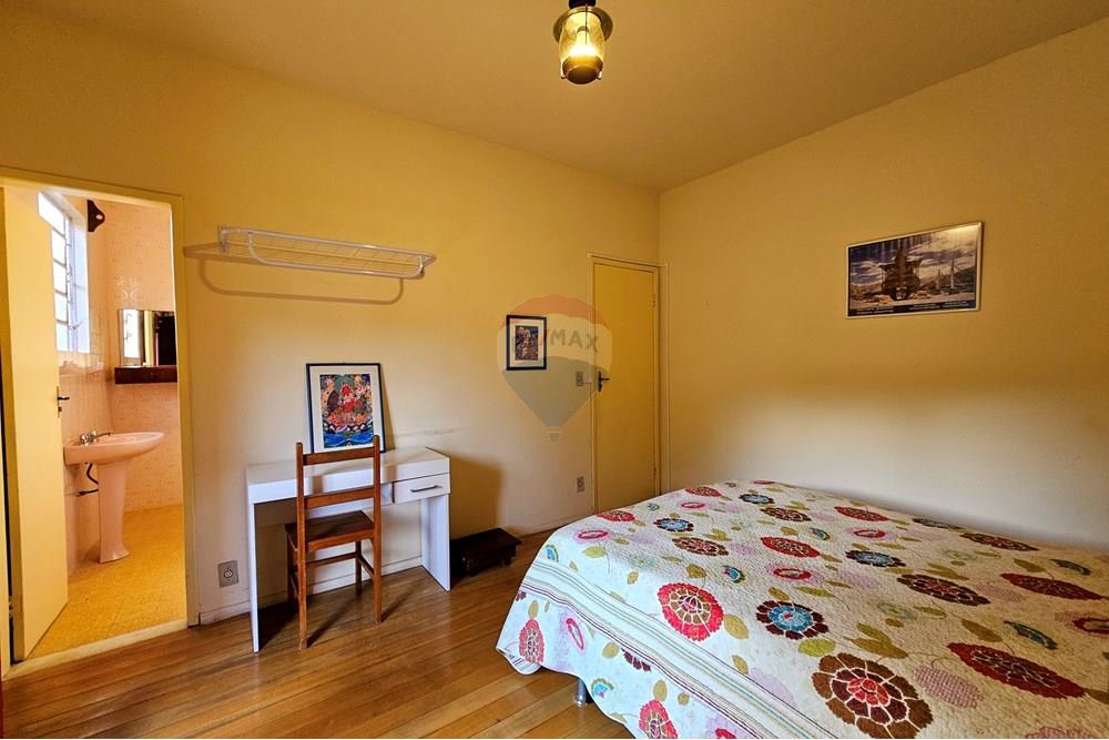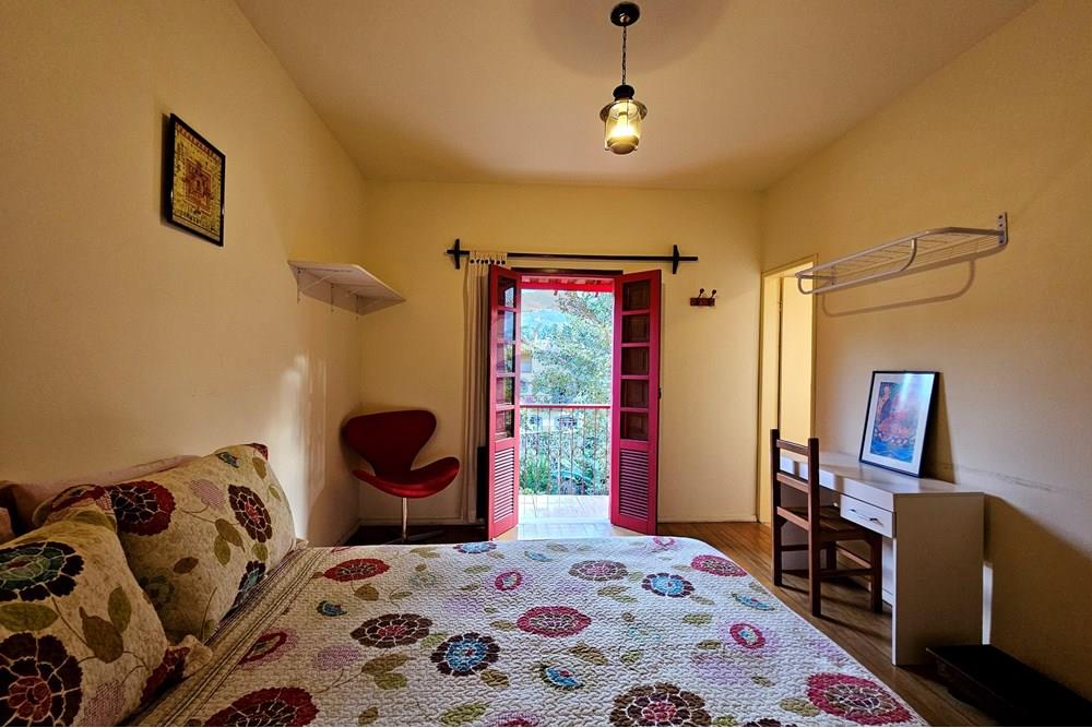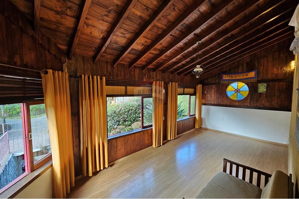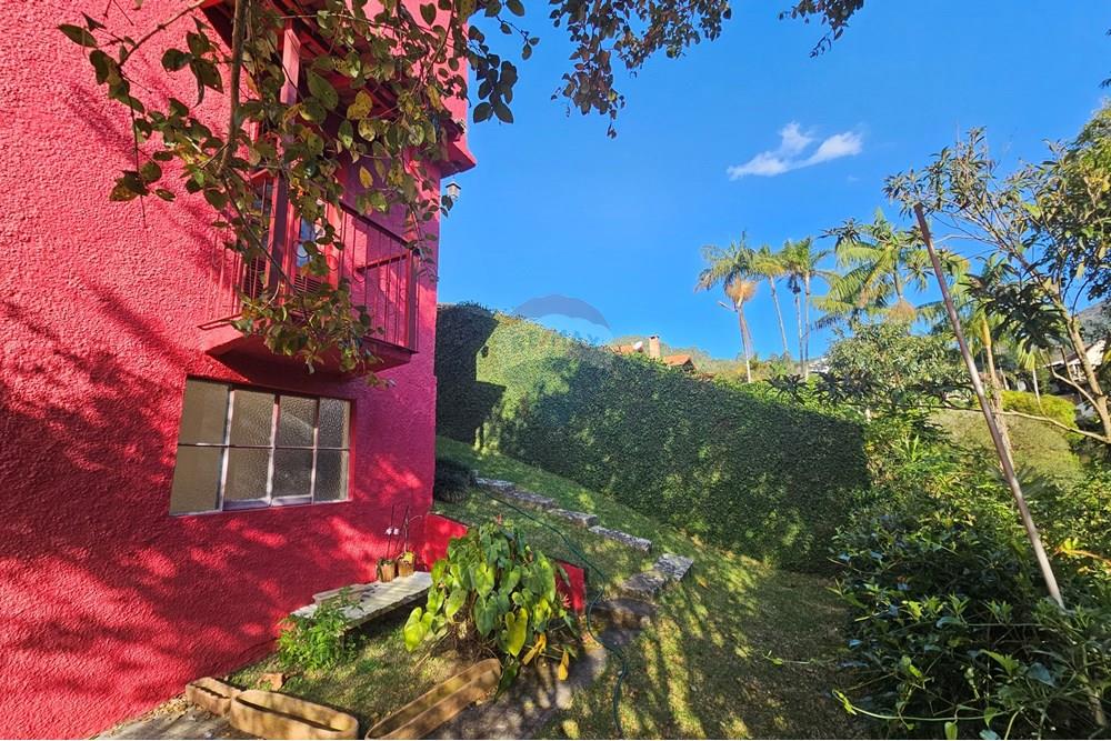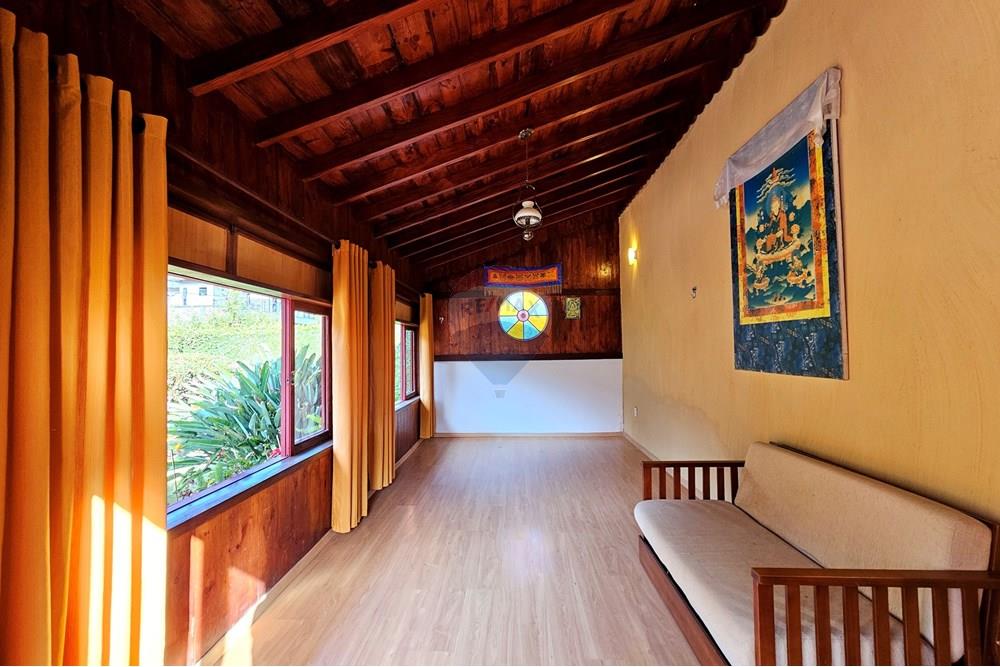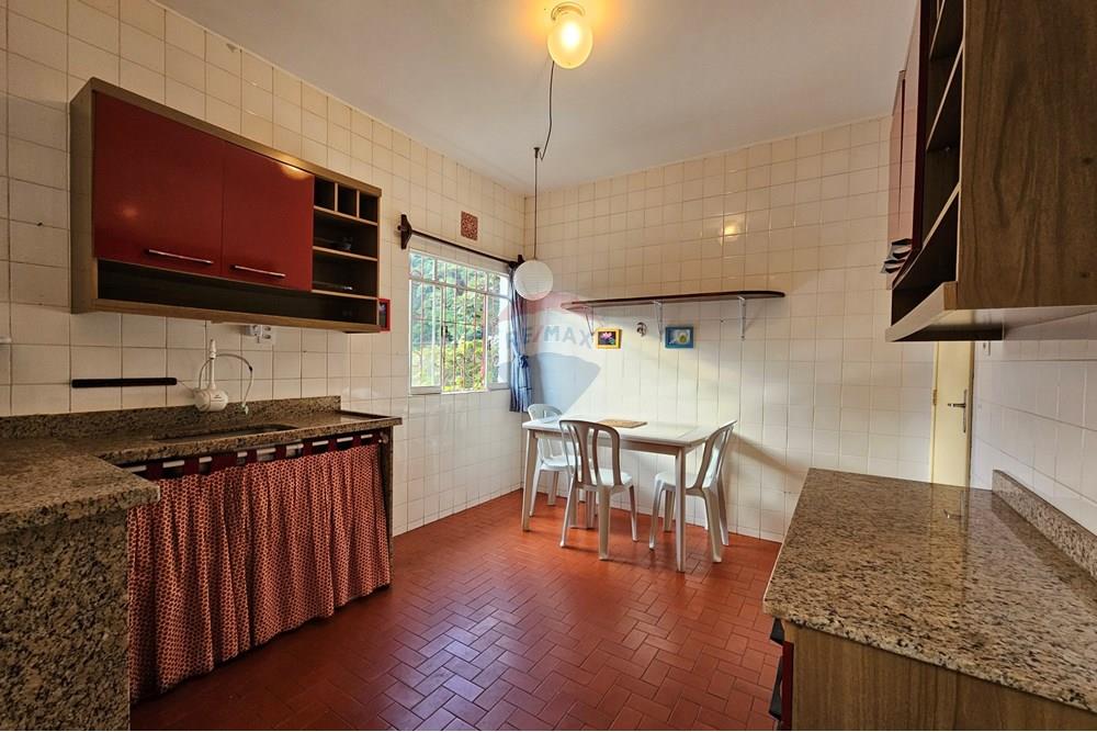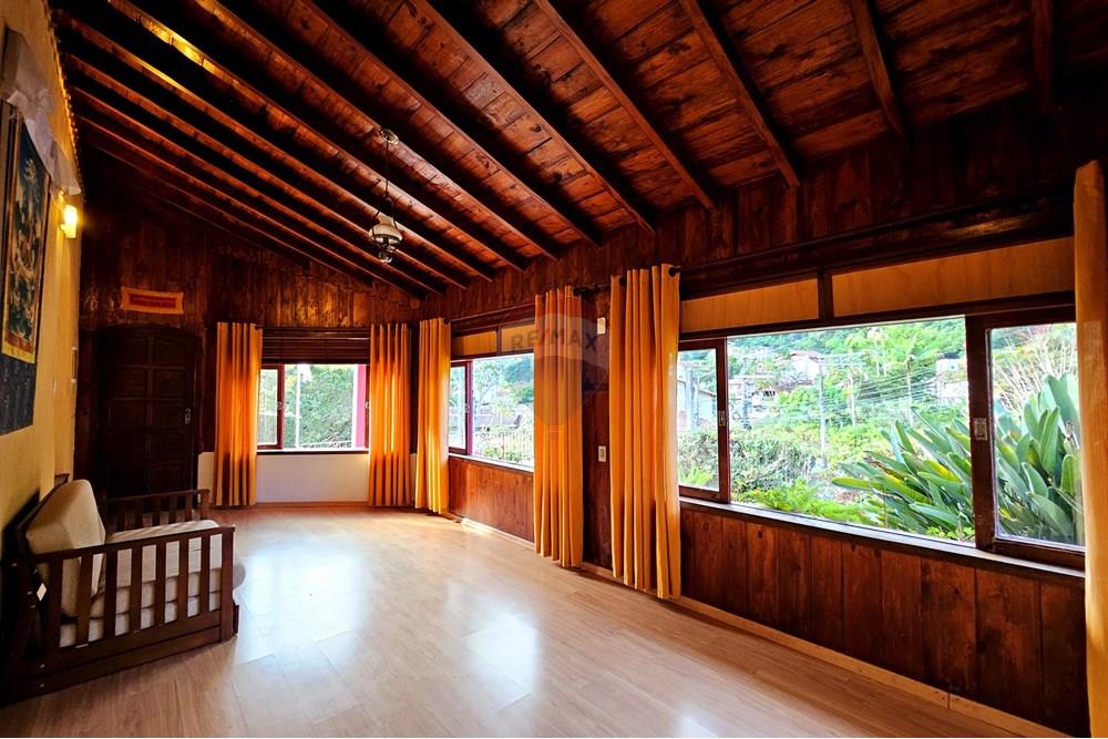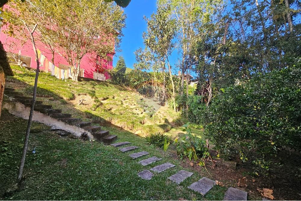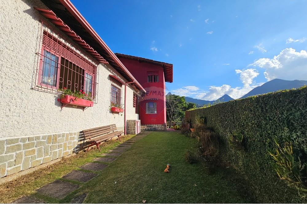 São 3 quartos, sendo 2 suítes e mais 1 quarto com funcionalidade de suíte canadense, em ligação com o banheiro social. Uma antessala ampla e com janelas que dão para a vista do jardim, da rua e da Pedra do Imperador é a entrada principal da casa. Logo a seguir, a sala com lareira, a cozinha e a copa, mais o acesso ao salão superior. Uma ampla lavanderia no nível do quintal e também um depósito de lenha complementam os cômodos da casa. Garagem para 1 ou 2 veículos, mais um deck por cima da mesma são também diferenciais do imóvel.